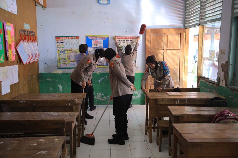 Polwan juga memberikan edukasi kepada siswa mengenai pentingnya kedisiplinan kebersihan, dan keselamatan dalam kehidupan sehari-hari dengan melakukan kerja bakti membersihkan lingkungan sekolah. “Kegiatan ini, merupakan bagian dari kepedulian Polwan terhadap masyarakat khususnya dalam bidang pendidikan dan keagamaan,” katanya.