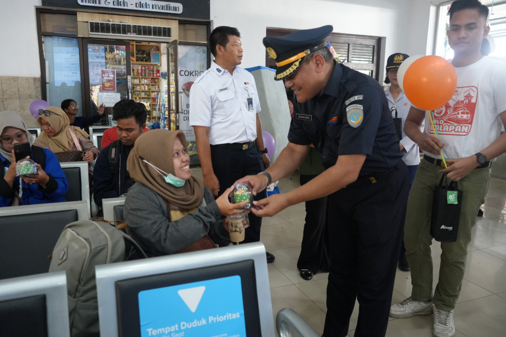 “Adapun pada puncak perayaan HUT ke-80 KAI pada hari ini, Minggu (28/9/2025), Vice President Daop 7 Madiun, Suharjono, bersama jajaran manajemen Daop 7 berkesempatan pula untuk Sapa Pelanggan dengan membagikan gift, souvenir khas KAI, cup cake, dan kopi. Bahkan, pelanggan yang berulang tahun tepat di tanggal 28 diberikan birthday surprise berupa birthday cake dan cenderamata,” terang Zainul.