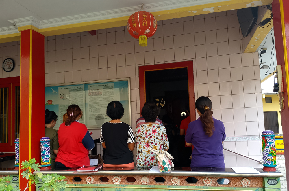 Warga keturunan tionghoa yang merupakan umat tri dharma dan tinggal di Madiun dan sekitarnya ini, sejak pagi berkenan berkumpul hingga pada pukul 09.20 WIB sembari berdiri sebagai penghormatan untuk melaksanakan tradisi di altar Dewa Dapur yang ada di TITD Hwe Ing Kiong.